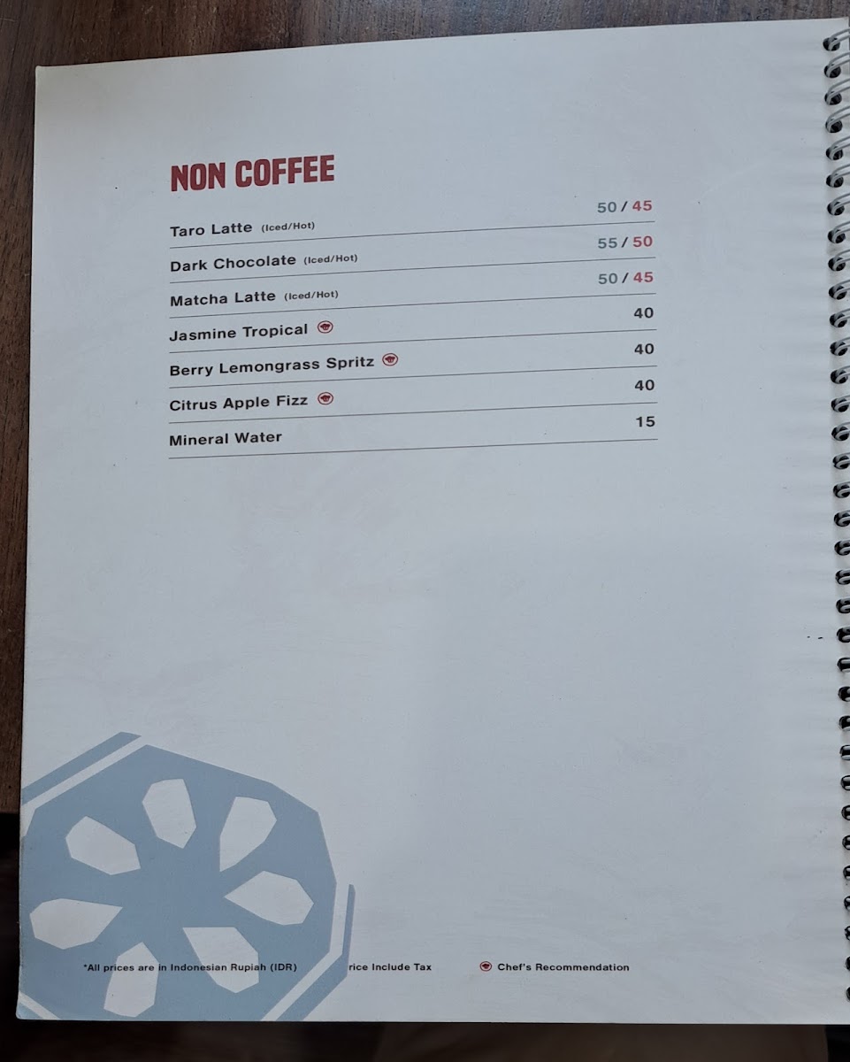 The menu at Delico Cafe & Bakery - Menara Mandiri offers a variety of food and drink options suited for different occasions such as breakfast, coffee breaks, or light meals. The selection includes typical cafe offerings like coffee and other beverages, complemented by light food items and snacks.
